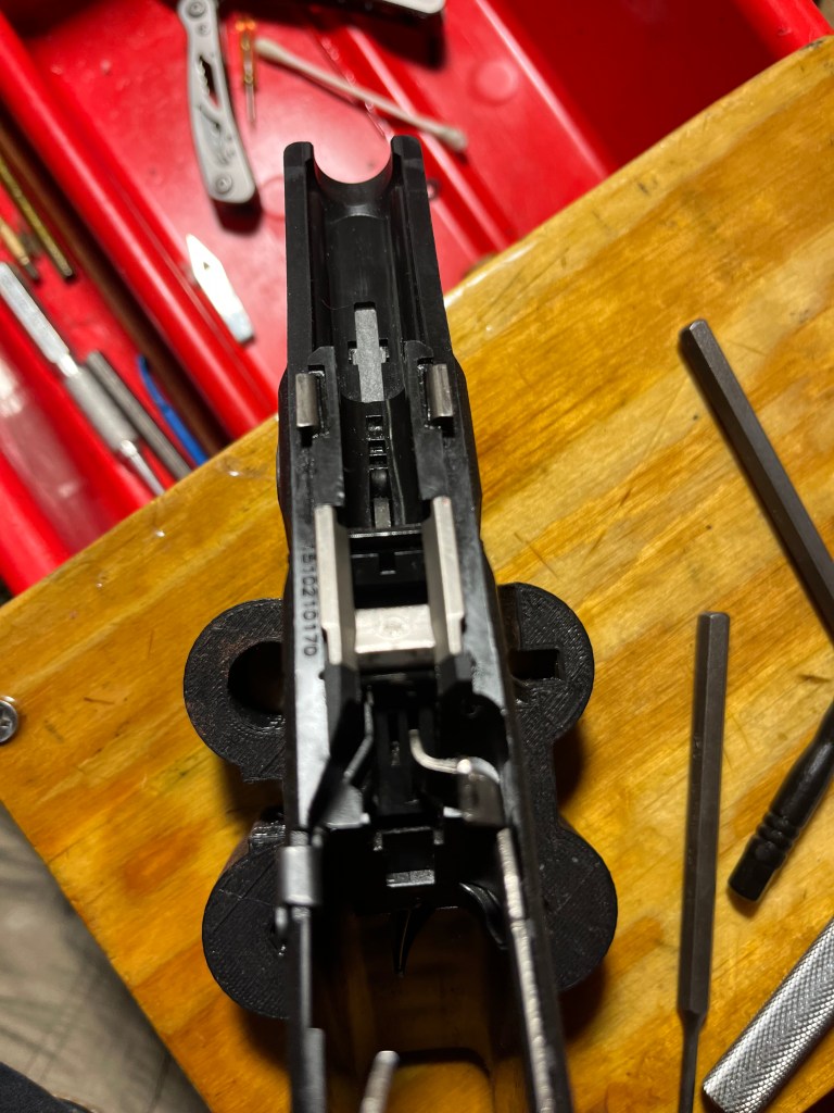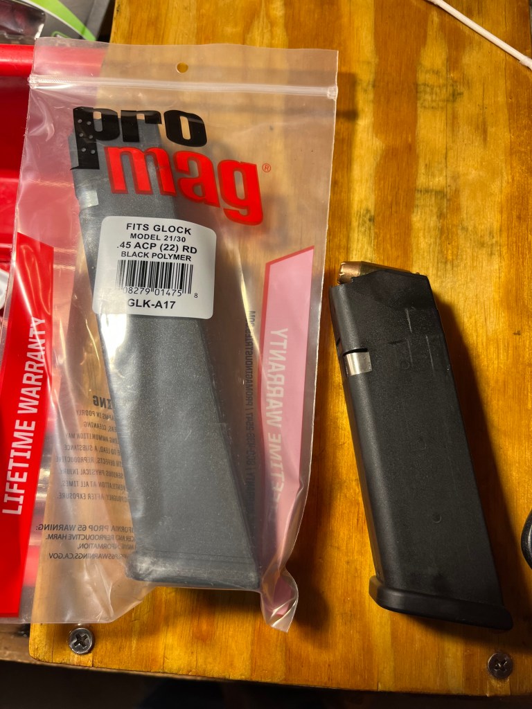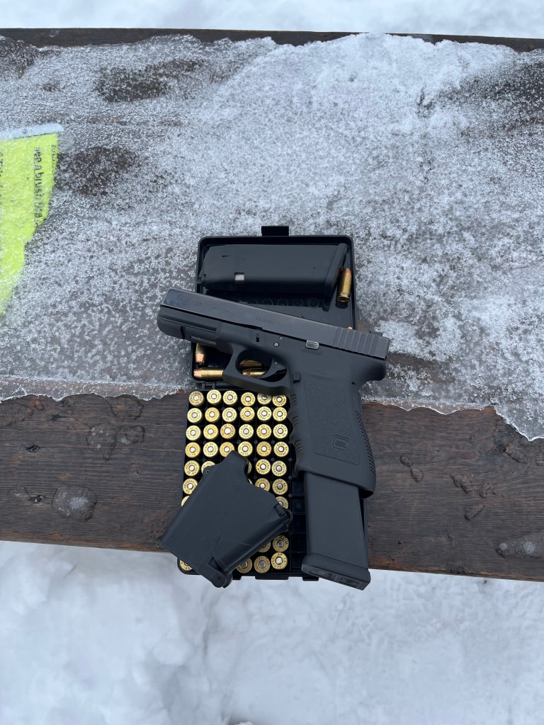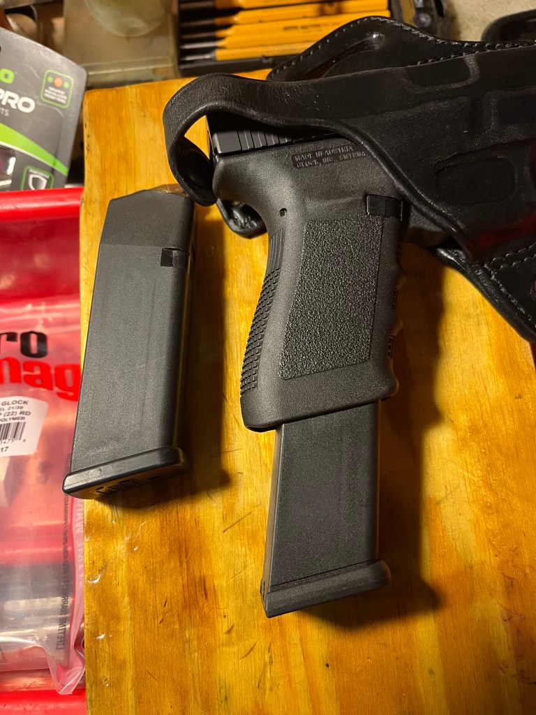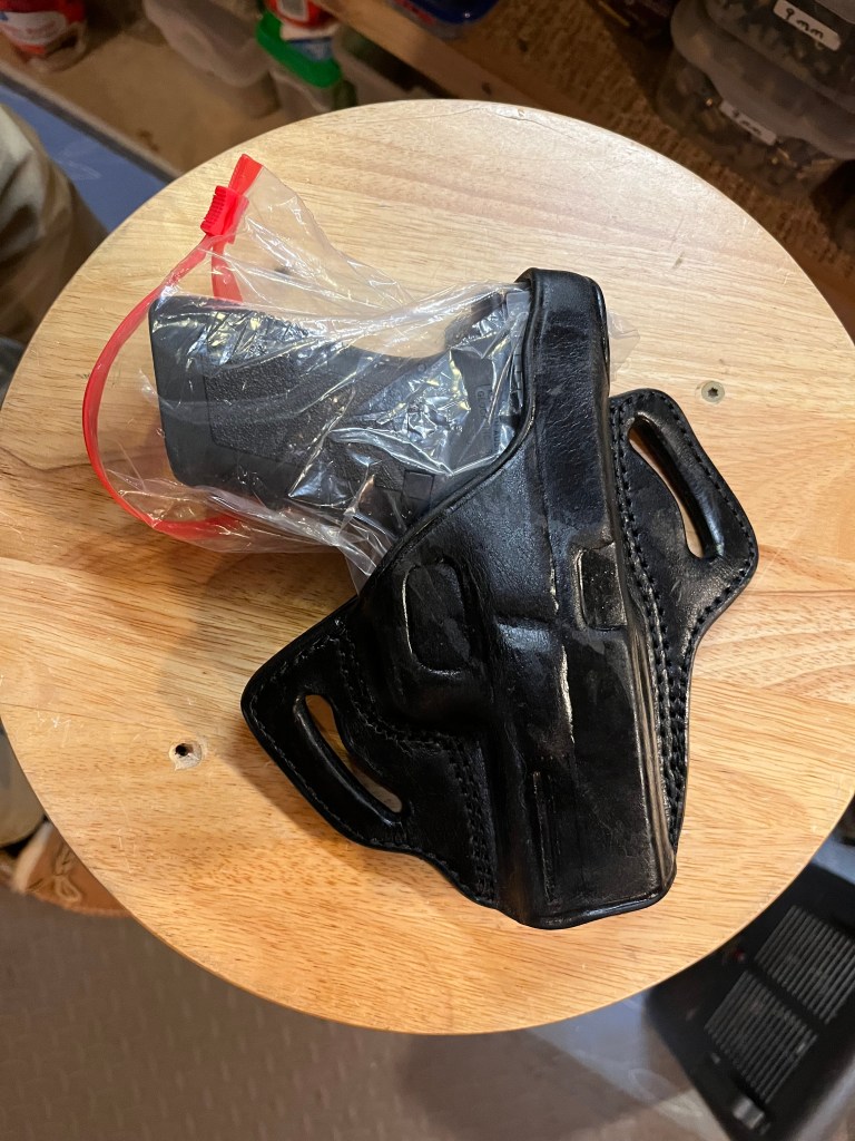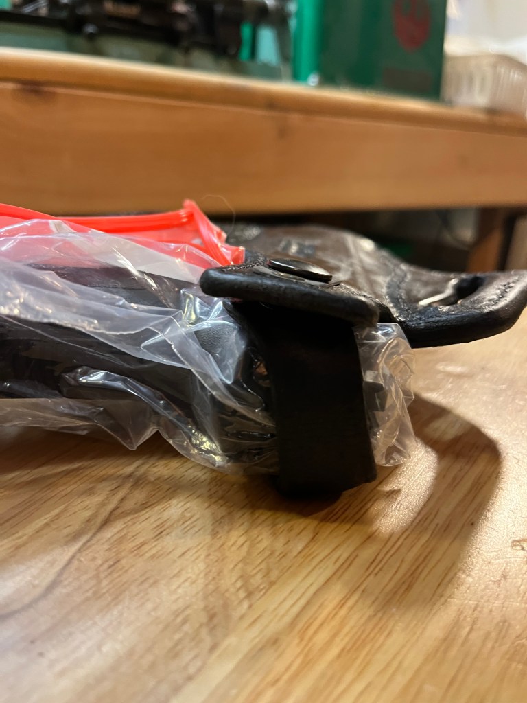 To borrow a phrase, today’s First World Problem is that my new Tagua leather holster for the G 21 is very tight. And the thumb break won’t snap on.