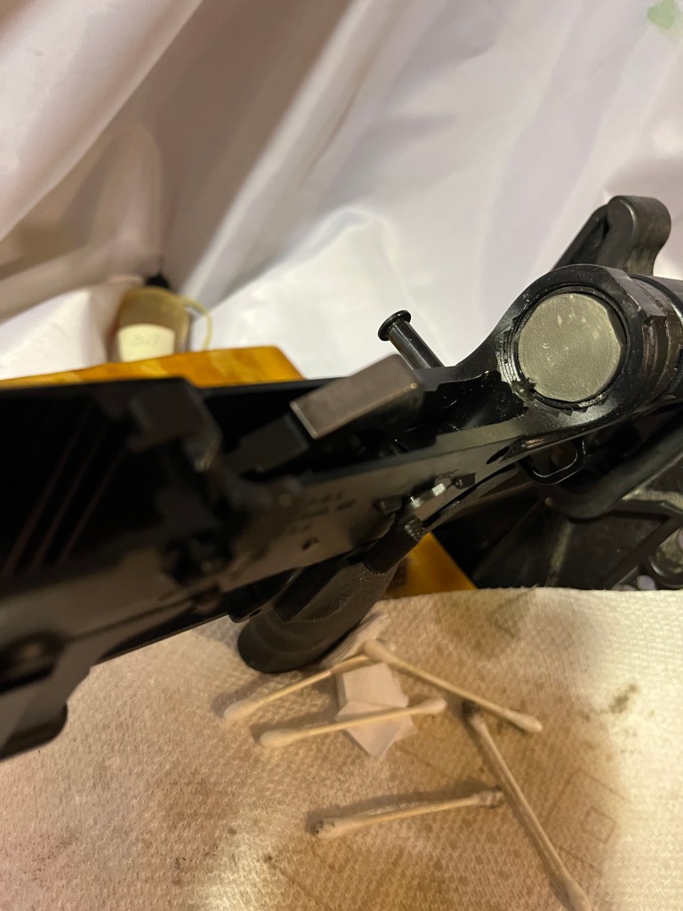 Back to cleaning. Before we get to the BCG, let’s do a little work on the lower. It doesn’t get as dirty as the upper, but still needs attention. Wipe everything down, including the inside of the mag well.
