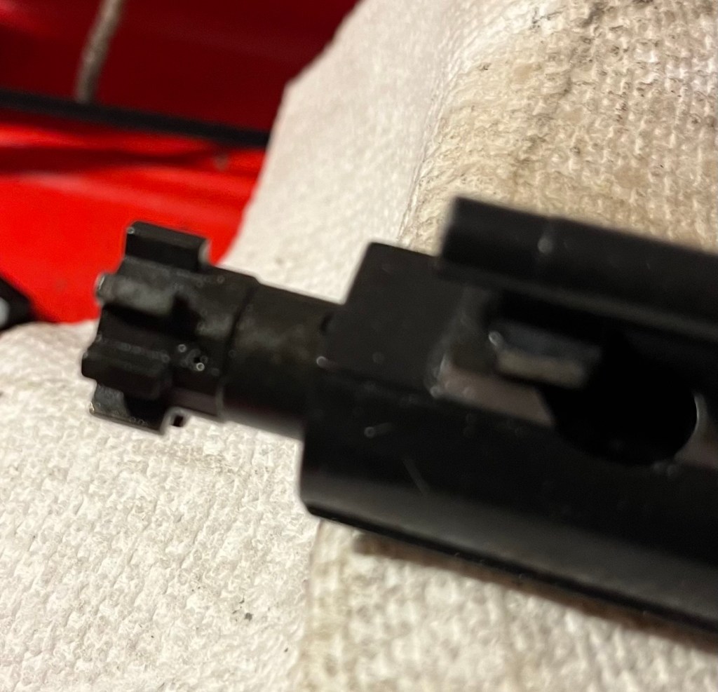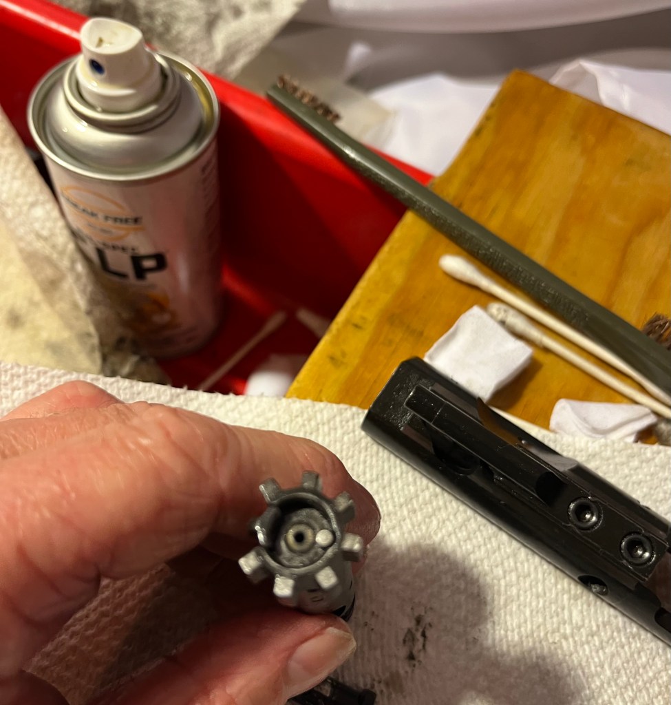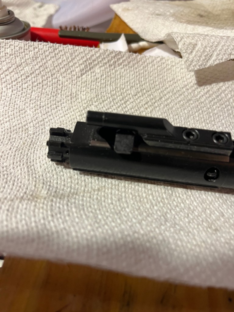 Clean the bolt face – you may need a toothbrush or wire brush to get all the spots.